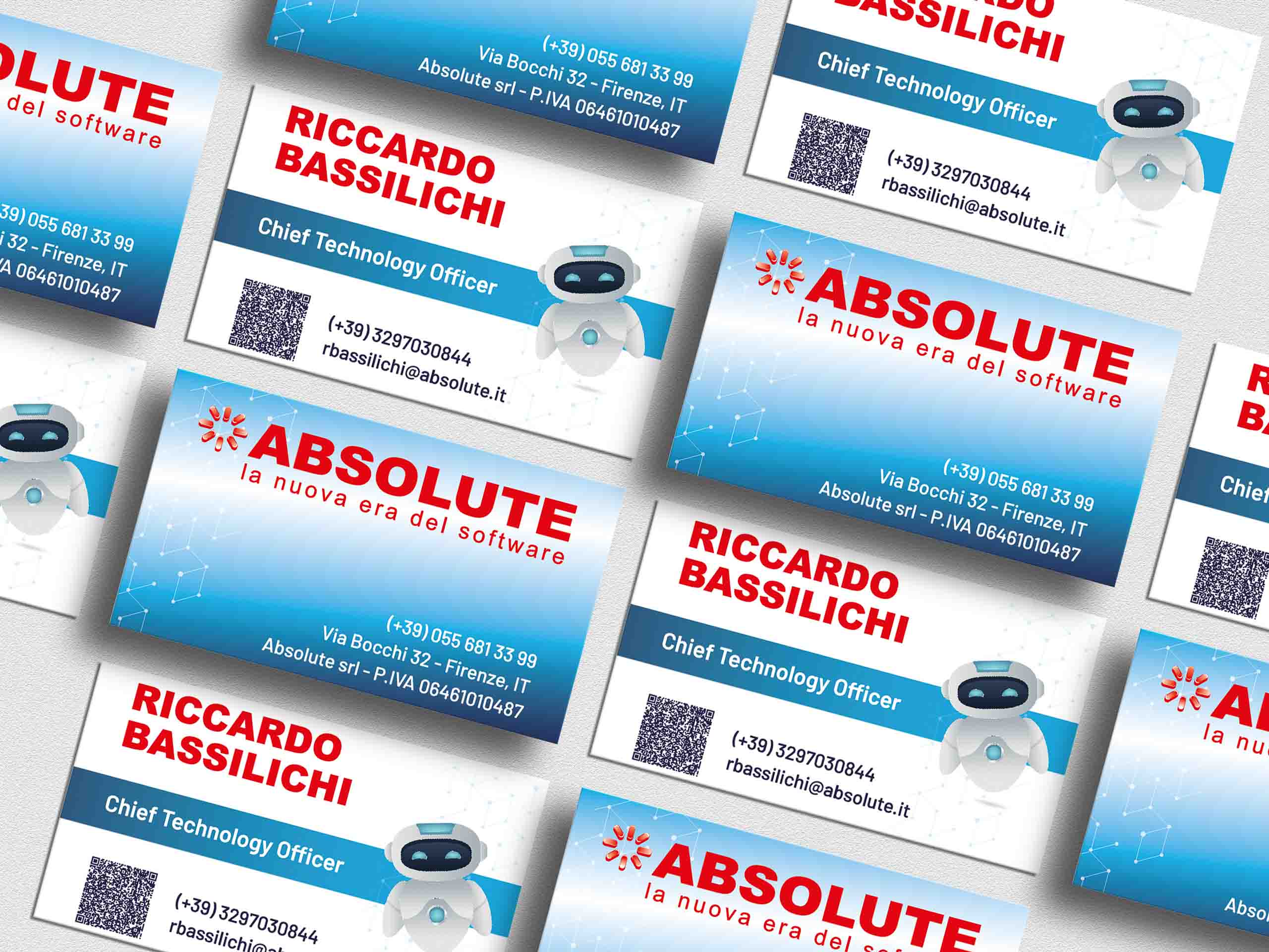 Abbiamo ideato e realizzato i biglietti da visita per il team Absolute in occasione delle due edizioni del TTG, coerenti con la nuova immagine aziendale e la grafica dello stand.