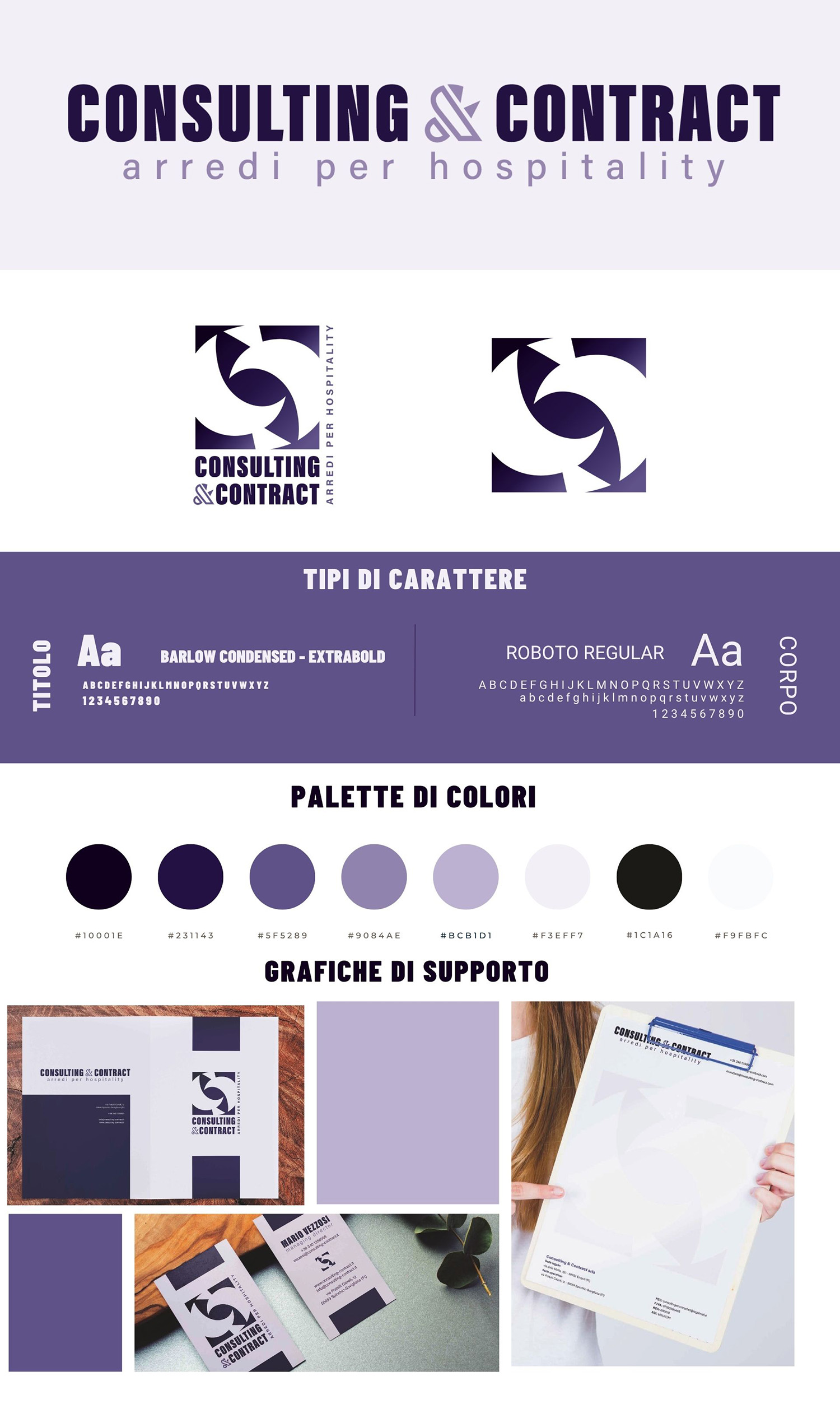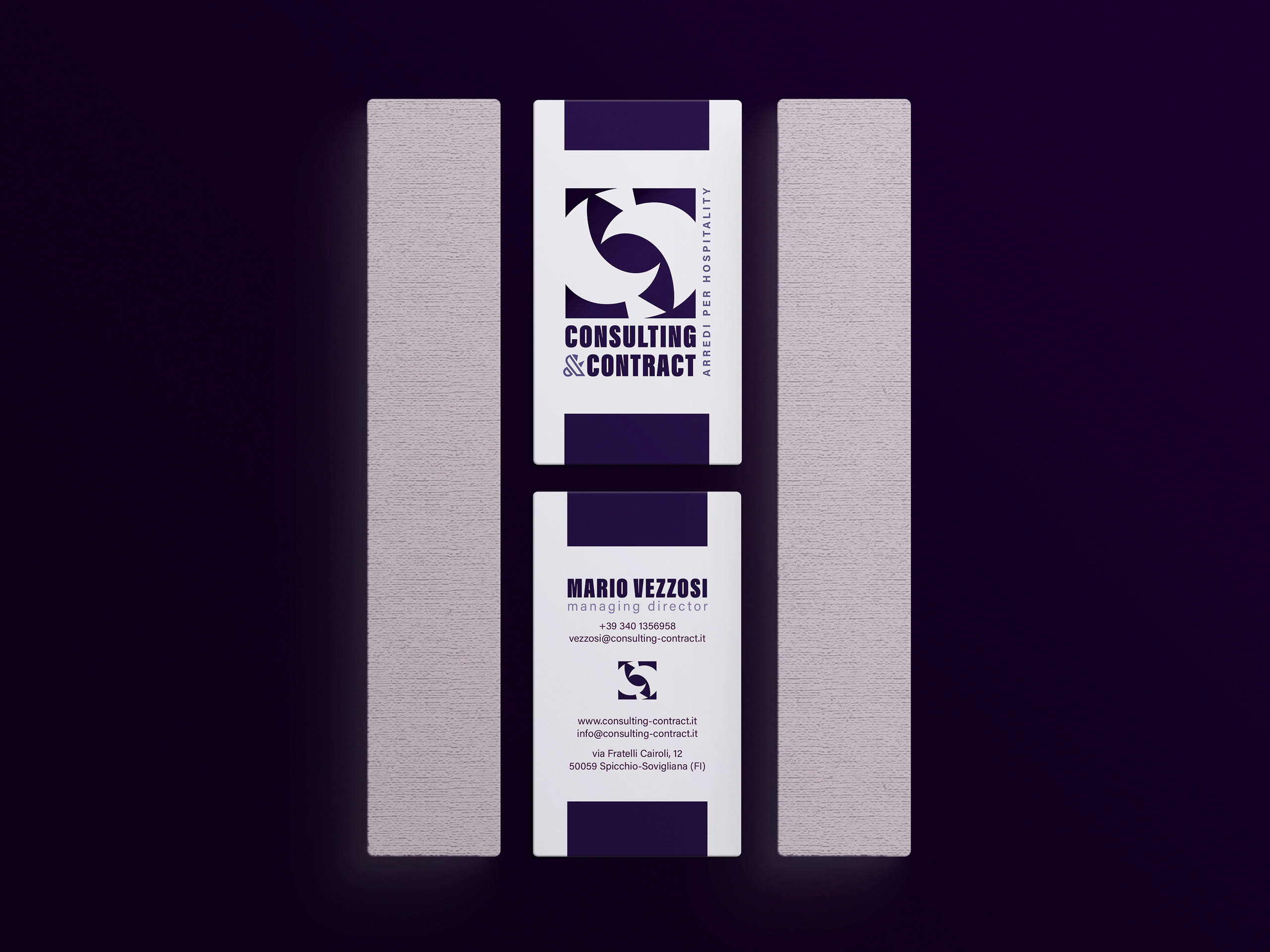 Il risultato è un sistema visivo raffinato ma essenziale, pensato per rappresentare Consulting & Contract come partner di fiducia nel settore dell’hospitality di alto profilo.