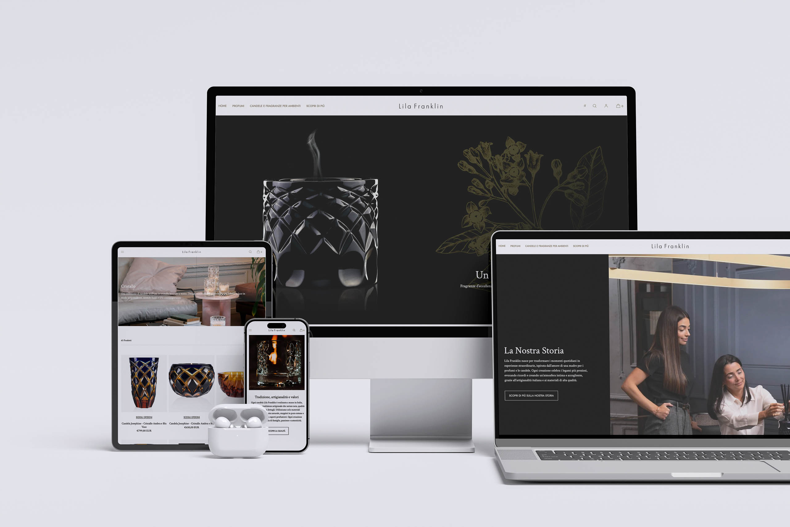 L’organizzazione del catalogo e la struttura delle categorie rendono l’esperienza di acquisto semplice, elegante e coerente con la filosofia di Lila Franklin: portare bellezza, armonia e profumo in ogni casa.